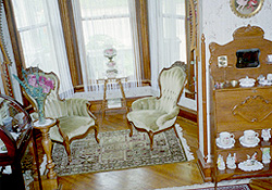 When you enter the Washington Street Inn you will immediately notice the art of master wood workers. The staircase is made of solid cherry and two fireplaces are also trimmed with cherry, one of which features a stained glass window centered in the mantle for unusual effect. Another stained glass is on the second floor. A classic foyer, the living room, dining room and kitchen all have hardwood floors. Antiques are found throughout the home and includes a 3000 piece Occupied Japan collection, some of which is offered for purchase. The Inn, however, still exudes an atmosphere that might best be described as "comfortable Victorian" with the furnishings attractive, but inviting. There are two porches for relaxation and a peaceful yard to enjoy with seasonal garden accents